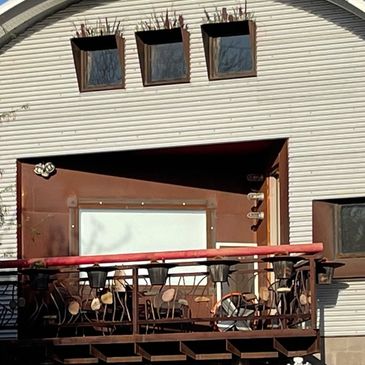 Featuring a shared patio for you to relax in the tranquility of our sculpture garden. The bar includes an icebox, wine glasses, and sink to keep your refreshments close by while you delve into your imagination.